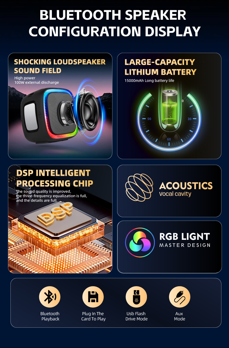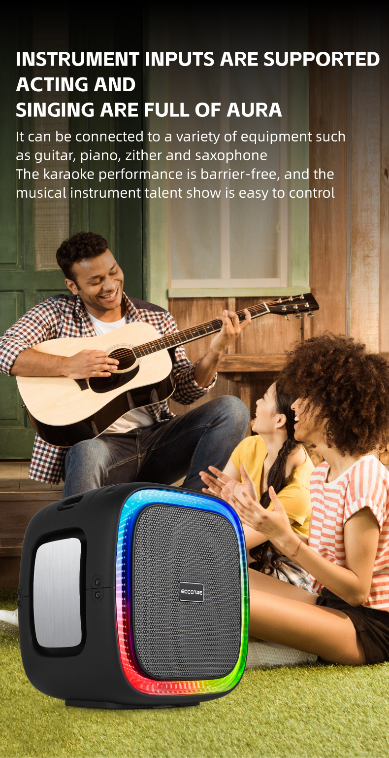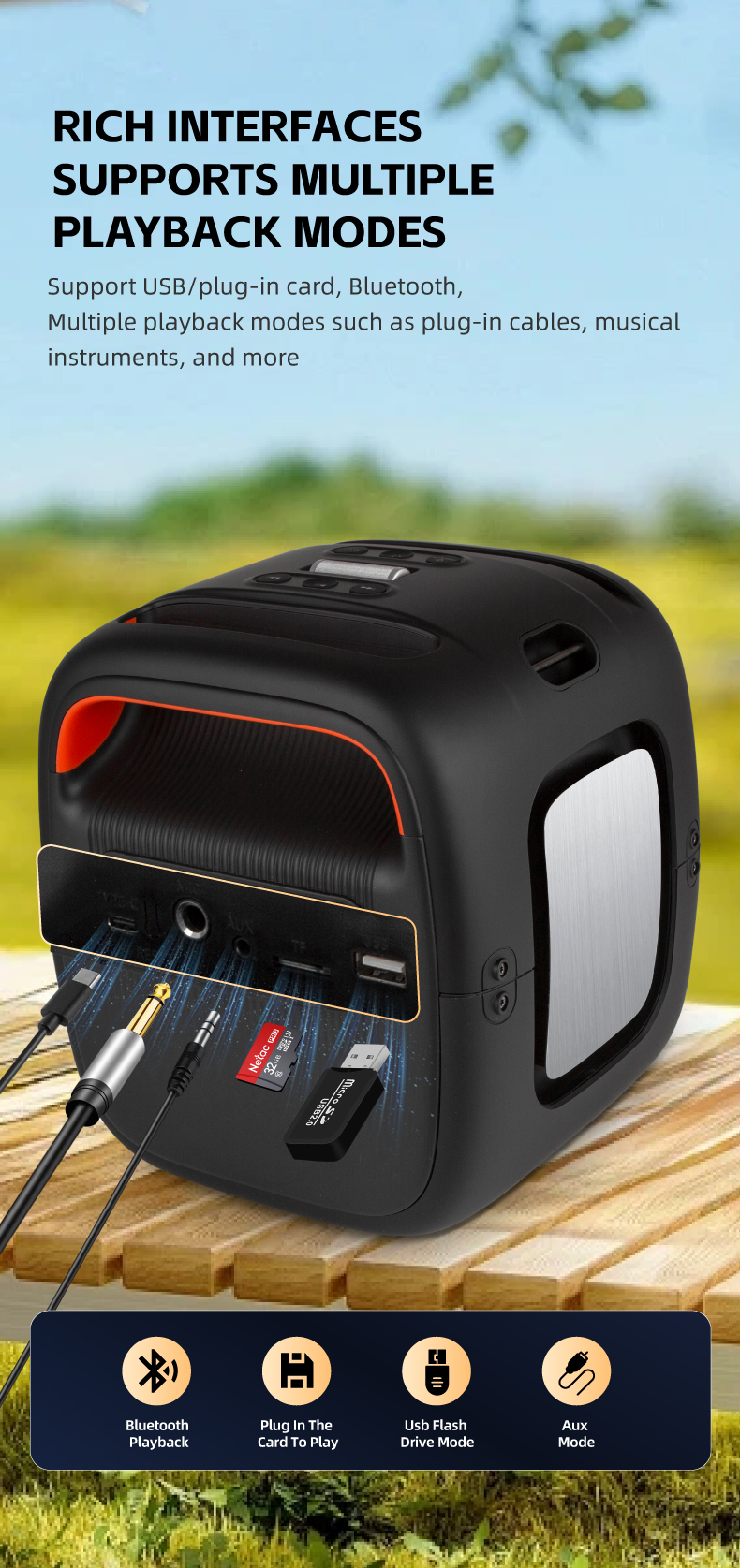 Audio In: Bluetooth/USB/TF card/AUX/Mic input
